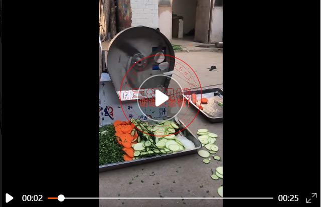 切菜机具备双调频功能,一端是切叶菜类,如长葱,蒜苗,韭菜,芹菜,白菜,青菜等,一端是切球根茎类,如萝卜,土豆,红薯,芋头,笋,洋葱,茄子,苹果,生姜等。根茎部分可切片(厚薄度2-10毫米可选),根茎部分切丝(2-10mm方丝可选),根茎部分切丁(8mm,10mm,12mm,15mm,20mm),叶菜部分切段切条(长度1-90mm可调),具备双调频功能。